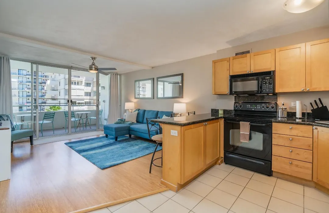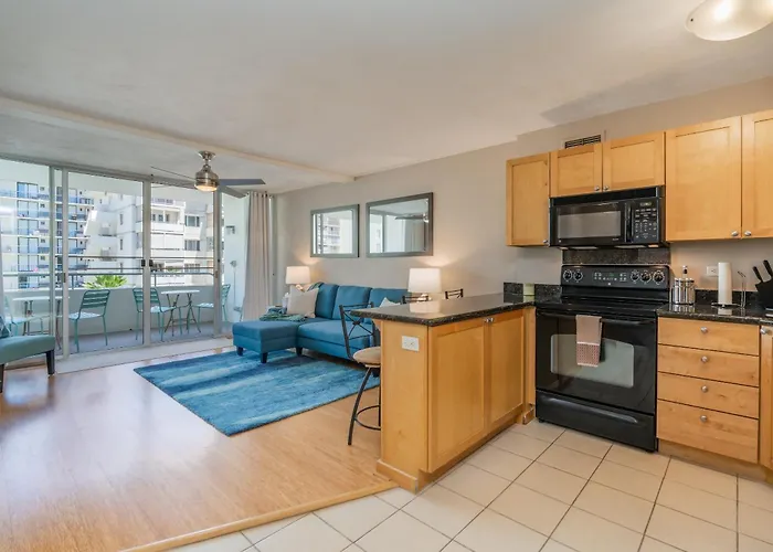 59m²のCentrally Located Waikiki Condo - Accommodates 4 ホノルルは、ロイヤルハワイアンセンターから徒歩で約5分で、ホノルル国際空港から15キロメートルの場所にあります。 インターナショナル マーケットプレイスとても近くに位置するこの寝室1室のアパートは、山の景色を見渡せるテラスを提供しています。